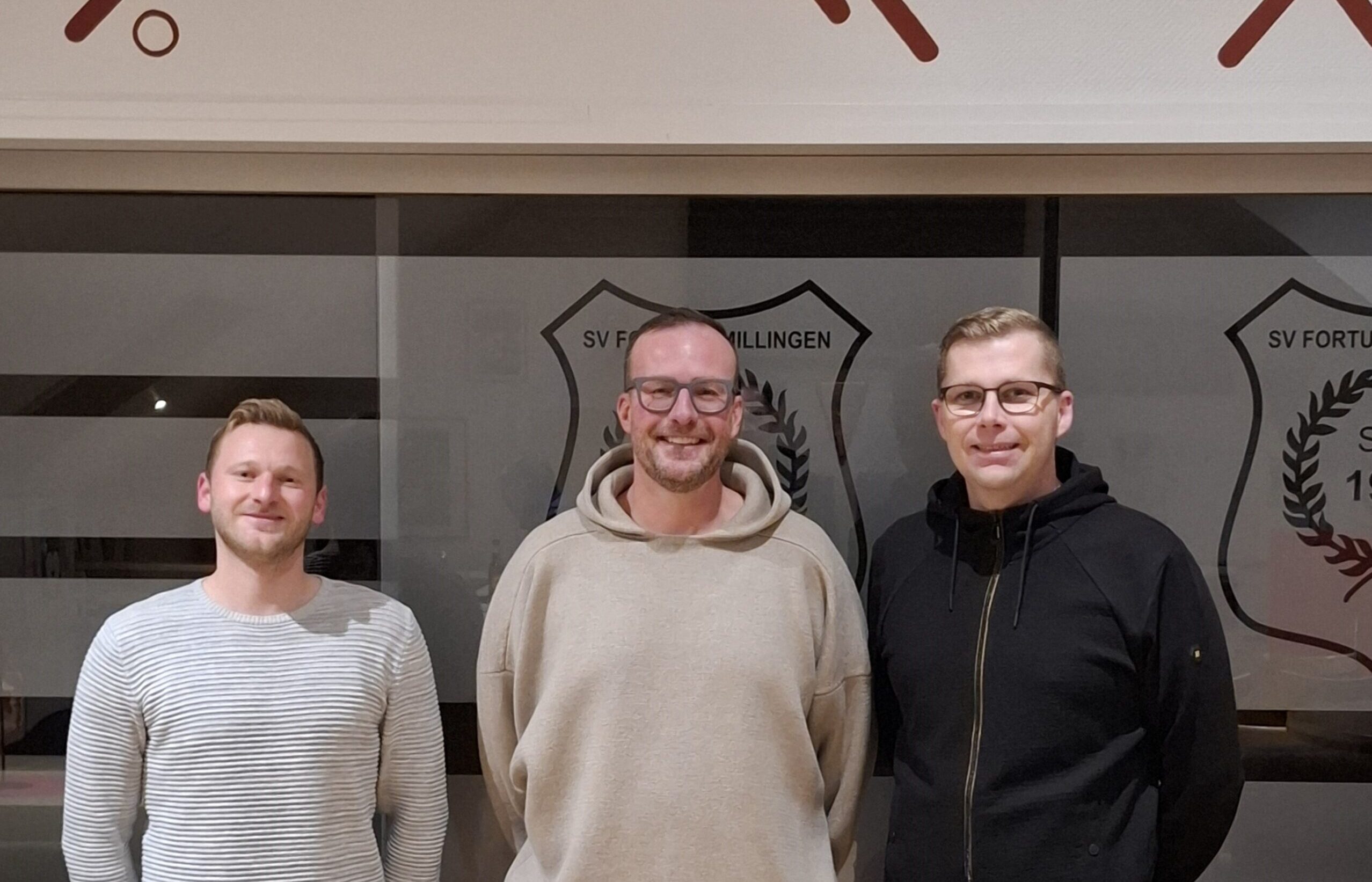 (Das Bild zeigt von links nach rechts: Abteilungsleiter Fußball Oleg Schmidt, Trainer Michael Gastrop, Geschäftsführer Nicolas te Baay)